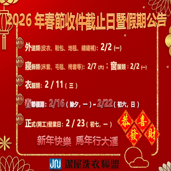 2026年春節收件截止日暨假期公告